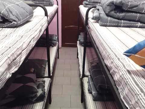 Комнаты оснащены двухъярусными кроватями, столами, стульями, вешалками для одежды.